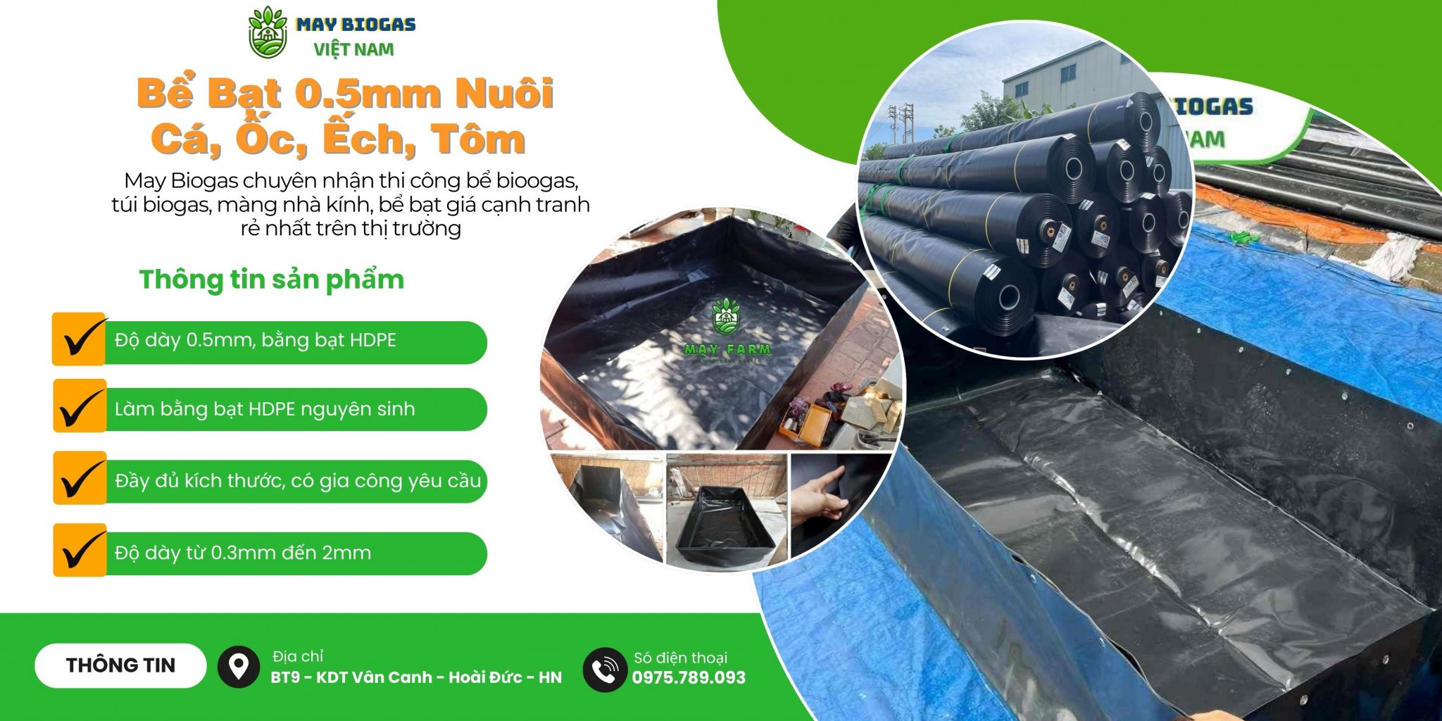 Trong những năm gần đây, https://maybiogas.com/be-bat-hdpe/ 0.5mm nuôi cá, ốc, ếch, tôm ngày càng được nhiều hộ chăn nuôi lựa chọn nhờ chi phí hợp lý, độ bền cao và tính linh hoạt. Đây được xem là giải pháp thay thế cho ao hồ đất truyền thống, giúp kiểm soát môi trường nuôi tốt hơn và nâng cao năng suất. 1. Bể bạt 0.5mm là gì? https://maybiogas.com/be-bat-hdpe-0-5mm-nuoi-ca-tom-oc-ech.html được làm từ bạt nhựa HDPE dày 0.5mm, có khả năng chống thấm tuyệt đối và chịu được điều kiện thời tiết khắc nghiệt. Bể có thể được thi công trên nền đất hoặc khung sắt, khung gỗ tùy điều kiện. Với độ dày 0.5mm, loại bạt này đảm bảo: Tuổi thọ từ 5 – 7 năm. Khả năng chịu lực, chống rách tốt. An toàn cho thủy sản nhờ không chứa hóa chất độc hại. 2. Ưu điểm khi dùng bể bạt 0.5mm nuôi cá, ốc, ếch, tôm - Tiết kiệm chi phí: So với việc xây bể xi măng hoặc đào ao lớn, bể bạt 0.5mm có chi phí đầu tư thấp hơn nhiều nhưng vẫn đảm bảo hiệu quả nuôi trồng. - Dễ thi công – tháo dỡ: Thời gian lắp đặt nhanh, chỉ cần vài giờ là có bể hoàn chỉnh, đồng thời dễ dàng tháo dỡ và di chuyển khi thay đổi vị trí nuôi. - Quản lý nguồn nước hiệu quả: Hạn chế rò rỉ, dễ kiểm soát lượng nước trong bể, giúp người nuôi chủ động thay nước và phòng tránh dịch bệnh. - Độ bền cao: https://maybiogas.com/be-bat-hdpe-0-5mm-nuoi-ca-tom-oc-ech.html chịu nắng mưa tốt, tuổi thọ trung bình từ 5 – 7 năm nếu sử dụng đúng cách, mang lại sự yên tâm lâu dài. - Phù hợp nhiều loại thủy sản: Có thể áp dụng cho nhiều mô hình khác nhau, từ nuôi cá, tôm, ốc, ếch riêng biệt đến kết hợp nhiều loại trong cùng hệ thống. 3. Ứng dụng của bể bạt 0.5mm trong nuôi trồng Nuôi cá: Cá rô phi, cá chép, cá trê… dễ thích nghi, phát triển nhanh trong bể bạt. Nuôi ốc: Ốc bươu đen, ốc nhồi được kiểm soát môi trường nước tốt, tỷ lệ sống cao. Nuôi ếch: Bể bạt giúp giữ vệ sinh, hạn chế bệnh đường ruột ở ếch. Nuôi tôm: Phù hợp cho tôm thẻ chân trắng, tôm sú ở quy mô vừa và nhỏ. 4. Kinh nghiệm lựa chọn bể bạt 0.5mm chất lượng Kiểm tra độ dày và độ bền của bạt: Ngoài 0.5mm, một số nơi có thể cung cấp bạt mỏng hơn, dễ rách. Người nuôi nên đo kiểm để tránh mua phải hàng kém chất lượng. Ưu tiên bạt có khả năng chống tia UV: Giúp hạn chế hư hỏng do nắng gắt, kéo dài tuổi thọ sử dụng. Lựa chọn kích thước bể theo mô hình nuôi: Nuôi cá, ếch thường cần bể rộng; nuôi tôm, ốc có thể chọn bể nhỏ hơn để dễ quản lý. Quan tâm đến phụ kiện đi kèm: Ống thoát nước, van xả, nẹp bạt… cần đồng bộ và chắc chắn để tránh rò rỉ trong quá trình sử dụng. So sánh giá và dịch vụ sau bán hàng: Một số nhà cung cấp có hỗ trợ vận chuyển, lắp đặt và bảo hành, giúp tiết kiệm chi phí và yên tâm hơn khi vận hành. Khung bể cần chắc chắn, chịu lực tốt để tránh sập đổ. Diện tích bể nên phù hợp với số lượng nuôi, tránh quá tải. Nên mua từ nhà cung cấp uy tín để đảm bảo chất lượng bạt và dịch vụ bảo hành. 5. Giá bể bạt 0.5mm nuôi cá, ốc, ếch, tôm Giá thành phụ thuộc vào: Diện tích và kích thước bể. Loại khung (khung sắt, gỗ hay đào đất lót bạt). Phụ kiện đi kèm (ống xả, hệ thống cấp nước, van thoát...). Trung bình, https://maybiogas.com/be-bat-hdpe-0-75mm-nuoi-ca-tom-oc-ech.html dao động từ 25.000 – 35.000đ/m². Tính cả khung và phụ kiện, chi phí lắp đặt bể sẽ từ vài triệu đồng, rẻ hơn nhiều so với xây hồ xi măng. Bể bạt 0.5mm nuôi cá, ốc, ếch, tôm là giải pháp kinh tế, bền bỉ và dễ quản lý cho người nông dân hiện đại. Nhờ những ưu điểm nổi bật về chi phí, độ bền và khả năng ứng dụng đa dạng, loại bể này ngày càng được ưa chuộng trong sản xuất nông nghiệp.