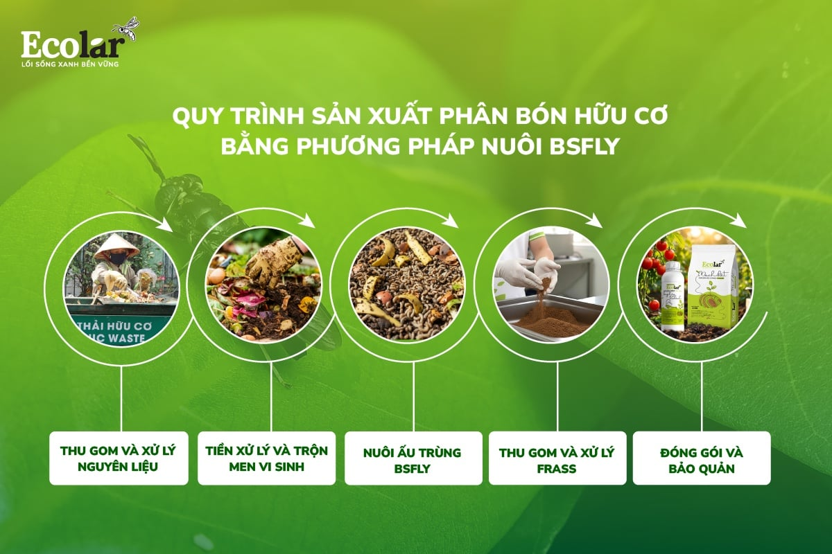 Trong bối cảnh ngành nông nghiệp chuyển mình mạnh mẽ theo hướng an toàn và bền vững, việc ứng dụng phân bón hữu cơ đang trở thành lựa chọn ưu tiên. Đây là nguồn dinh dưỡng tự nhiên giúp cải thiện đất, tăng năng suất và hạn chế tác động xấu đến môi trường. Nhờ áp dụng quy trình sản xuất nghiêm ngặt và sử dụng nguyên liệu sạch, phân bón hữu cơ Ecolar mang đến giải pháp toàn diện cho canh tác hiện đại, kết hợp giữa công nghệ và thiên nhiên nhằm tạo ra những sản phẩm thân thiện, an toàn cho cây trồng và sức khỏe con người. Phân bón hữu cơ là gì? Phân bón hữu cơ được tạo ra từ các nguyên liệu tự nhiên như phân động vật, phụ phẩm nông nghiệp, chất thải hữu cơ sinh hoạt và các chủng vi sinh vật có lợi. Khác với phân hóa học, phân hữu cơ giúp phục hồi đất, tăng độ tơi xốp, cải thiện khả năng giữ nước và duy trì hệ vi sinh vật trong đất. Đây cũng là nguồn cung cấp dinh dưỡng đa lượng, vi lượng đầy đủ và ổn định cho cây trồng. Lợi ích của phân bón hữu cơ Cải thiện dinh dưỡng và sức khỏe cây trồng Phân hữu cơ chứa N, P, K cùng các vi lượng như Canxi, Magie và lưu huỳnh, giúp cây sinh trưởng toàn diện, kích thích rễ, thân, lá và hạn chế sâu bệnh. Khi đất giàu hữu cơ, cây khỏe hơn và năng suất tăng rõ rệt. Nâng cao cấu trúc và độ phì của đất Sử dụng phân hữu cơ lâu dài giúp đất tơi xốp, giàu mùn, tăng khả năng hấp thu dưỡng chất và hạn chế tình trạng thoái hóa đất. Hệ vi sinh vật trong đất hoạt động tốt hơn, giúp cân bằng hệ sinh thái tự nhiên. Giảm ô nhiễm và tái chế chất thải Phân hữu cơ được sản xuất từ phế phẩm nông nghiệp, rác hữu cơ sinh hoạt hoặc phân động vật, giúp giảm thiểu lượng rác thải ra môi trường. Đây là giải pháp hiệu quả trong mô hình kinh tế tuần hoàn, góp phần giảm khí thải và ô nhiễm đất – nước. Bảo vệ hệ sinh thái tự nhiên Sử dụng phân hữu cơ thay thế dần phân hóa học giúp hạn chế độc tố tích tụ trong đất, bảo vệ sinh vật có lợi và giúp đất phục hồi nhanh hơn. Đây là nền tảng cho nông nghiệp bền vững. Nguồn nguyên liệu sản xuất phân bón hữu cơ Chất thải hữu cơ nông nghiệp Rơm rạ, lá cây, vỏ trấu, mùn cưa, bã mía, bã cà phê… là nguồn nguyên liệu giàu carbon, giữ vai trò quan trọng trong việc cân bằng tỷ lệ C/N khi ủ. Phân động vật Phân bò, phân gà, phân lợn được xử lý đúng quy chuẩn giúp tạo ra nguồn dinh dưỡng tự nhiên, hỗ trợ đất tơi xốp và giàu mùn. Rác thải hữu cơ sinh hoạt Vỏ trái cây, rau củ, bã cà phê, bã trà… sau xử lý có thể trở thành nguyên liệu quý giá để sản xuất phân hữu cơ. Phụ phẩm từ ngành chế biến thực phẩm Bã đậu nành, vỏ tôm cua, đầu cá, bã bia… mang hàm lượng dinh dưỡng cao giúp tối ưu chất lượng phân bón đầu ra. Quy trình sản xuất phân bón hữu cơ 1. Quy trình ủ truyền thống Bước 1: Chuẩn bị nguyên liệu Nguồn nguyên liệu được phân loại, làm sạch và trộn theo tỷ lệ chuẩn để đảm bảo hiệu quả ủ. Bước 2: Ủ nguyên liệu Hỗn hợp được ủ trong khoảng 5 ngày để khởi động quá trình phân hủy. Nhiệt độ và oxy được kiểm soát chặt chẽ. Vi sinh vật có lợi được bổ sung để tăng giá trị dinh dưỡng. Bước 3: Sấy khô và xử lý diệt khuẩn Nguyên liệu đã ủ được đưa đi sấy ở 180°C để đạt độ khô chuẩn. Sau đó tiếp tục xử lý ở 70°C nhằm tiêu diệt mầm bệnh. Bước 4: Ép viên Hỗn hợp được nén thành viên có kích thước 3.5 – 5 mm, đảm bảo đồng đều và dễ sử dụng. Bước 5: Đóng gói và lưu kho Sản phẩm đạt chuẩn được đóng gói và phân phối ra thị trường. 2. Quy trình sản xuất bằng mô hình BSFly Bước 1: Thu gom và xử lý nguyên liệu Nguyên liệu được lựa chọn kỹ lưỡng, điều chỉnh độ ẩm phù hợp cho ấu trùng BSF phát triển. Bước 2: Tiền xử lý và trộn men vi sinh Nguyên liệu được cắt nhỏ, phối trộn men vi sinh để tăng tốc phân hủy, giúp ấu trùng hấp thụ dễ hơn. Bước 3: Ấu trùng BSF phân hủy chất hữu cơ Ấu trùng tiêu hóa nhanh chất thải, chuyển đổi thành protein và tạo frass giàu dưỡng chất. Bước 4: Thu gom frass Frass được sàng lọc, làm khô, nghiền mịn và có thể bổ sung vi sinh có lợi để tăng giá trị. Bước 5: Đóng gói và bảo quản Frass hoàn chỉnh được đóng gói, bảo quản khô thoáng và phân phối cho thị trường. Ecolar – Đơn vị sản xuất phân bón hữu cơ chất lượng cao Ecolar tiên phong trong lĩnh vực sản xuất và phân phối phân bón hữu cơ tại Việt Nam. Với quy trình bài bản và công nghệ hiện đại, Ecolar mang đến các dòng sản phẩm đạt tiêu chuẩn, an toàn và thân thiện môi trường. Ecolar luôn chọn nguồn nguyên liệu sạch, không chứa hóa chất độc hại, đồng thời áp dụng hệ thống máy móc tự động giúp tối ưu chi phí và tăng độ ổn định của sản phẩm. Đội ngũ kỹ thuật am hiểu nông nghiệp luôn hỗ trợ bà con trong quá trình canh tác, đảm bảo man
